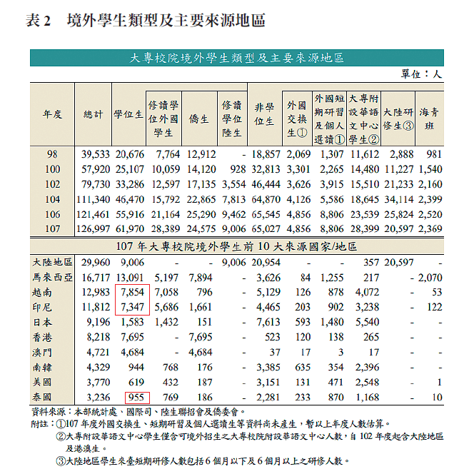 資料來源:教育部(2019) https://stats.moe.gov.tw/files/brief/107 年大專校院境外學生概況.pdf